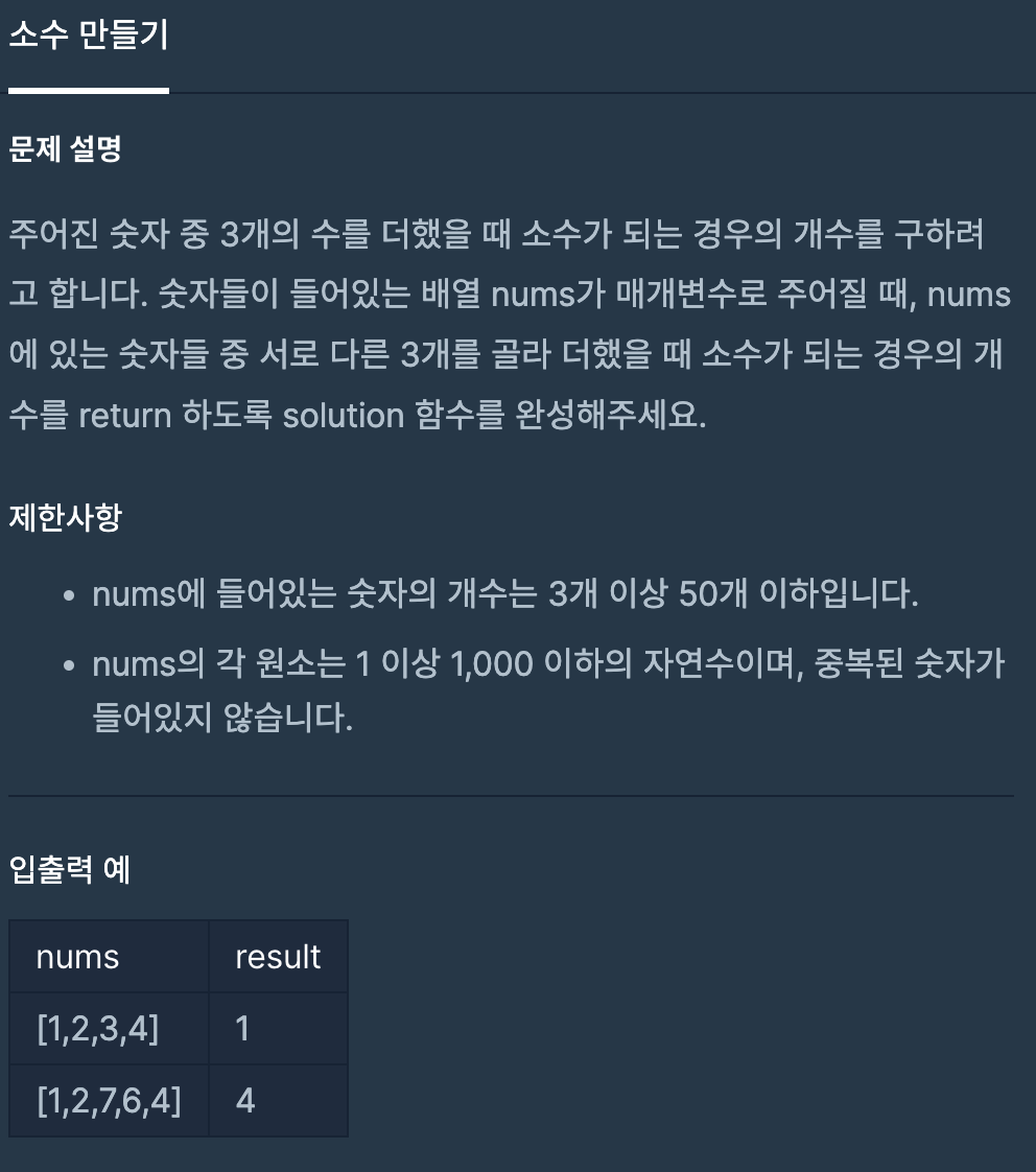 [programmers] 소수 만들기 (java) -1level