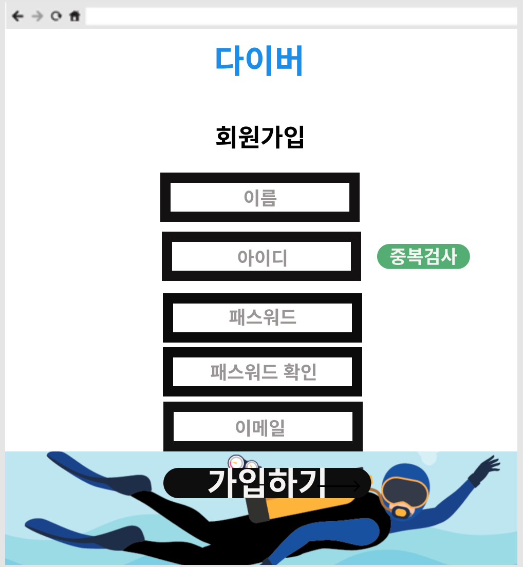 - 아이디가 없다면 회원가입 버튼을 눌러 회원가입 페이지로 이동한다.